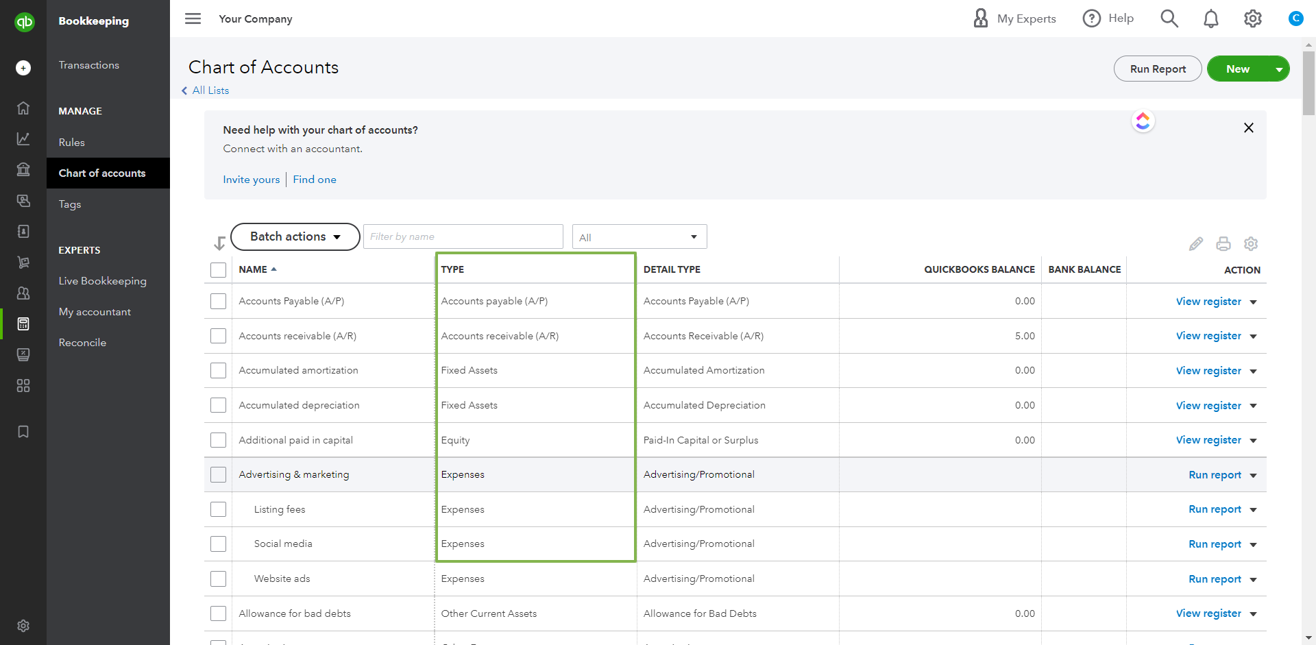 Ensure that the account type matches on Quickbooks.