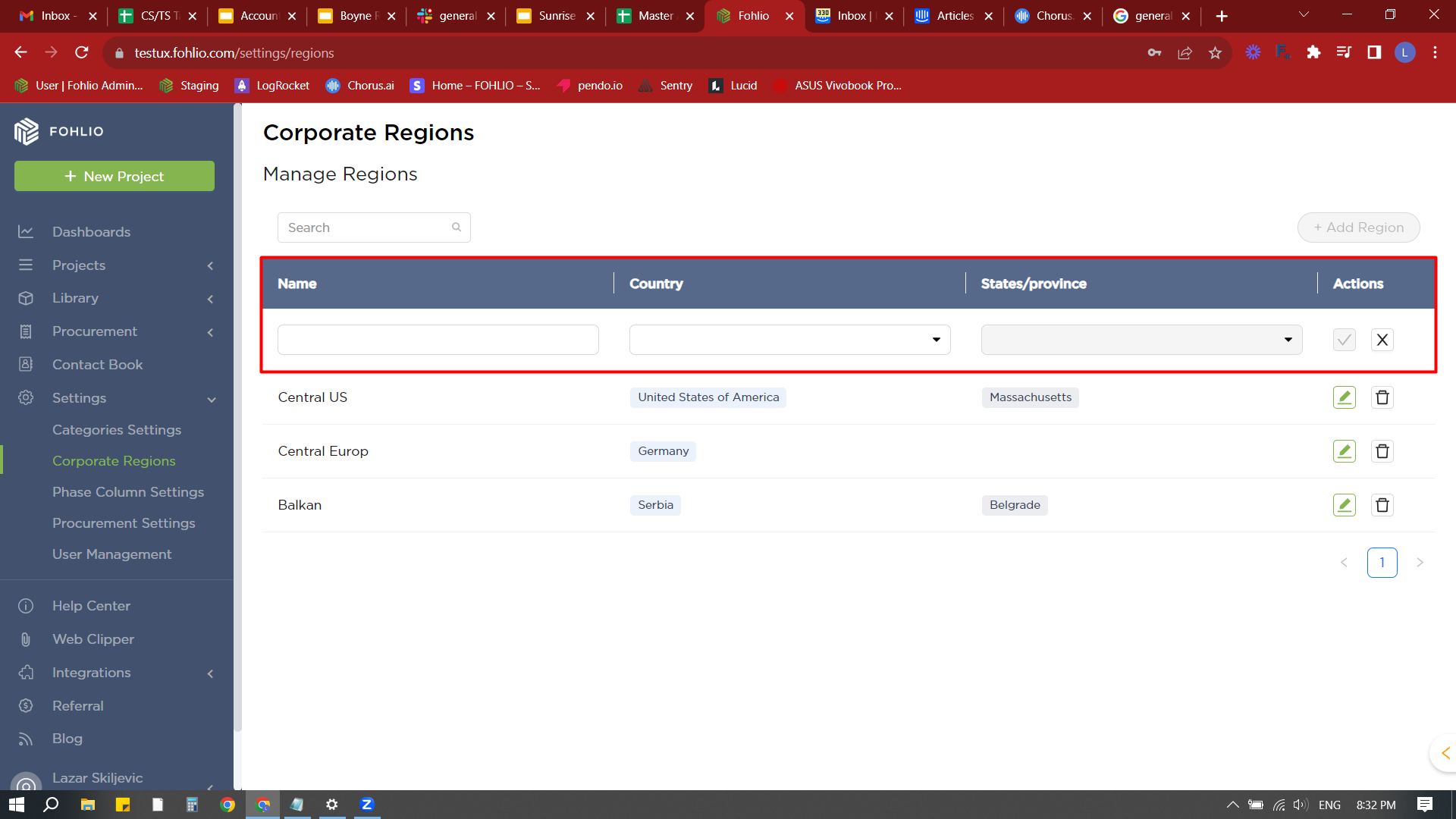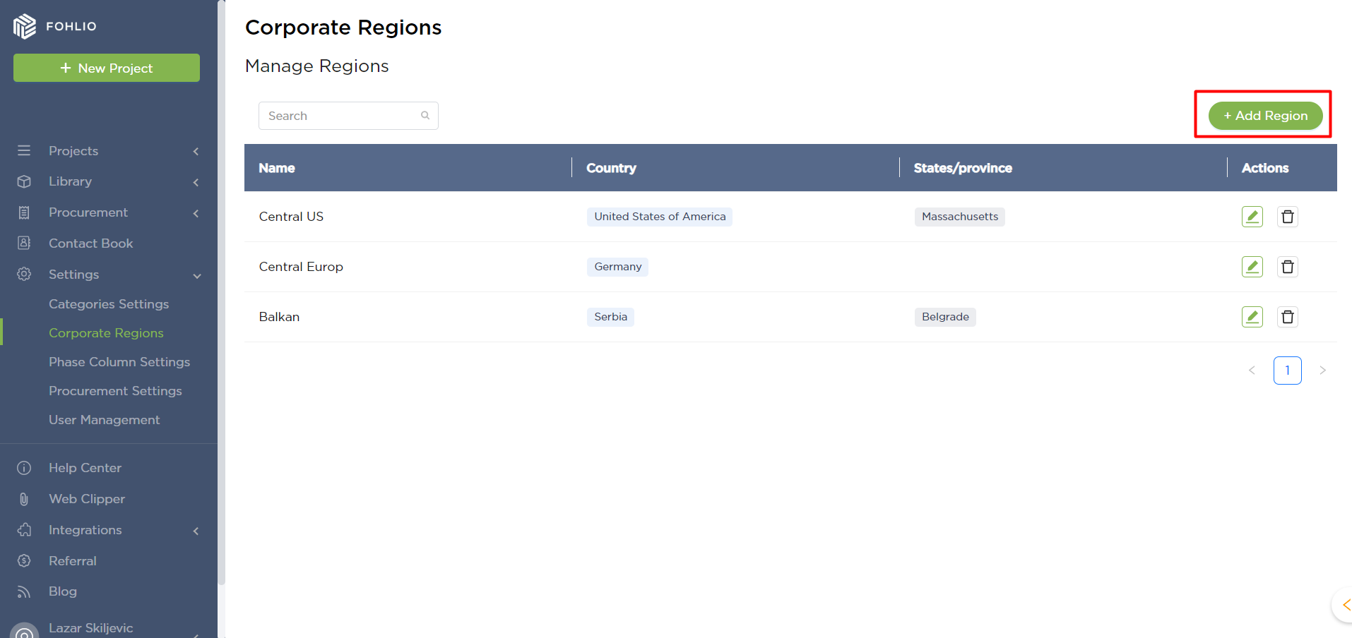 - Here you will see the list of existing regions, by pressing “+ Add Region” you can add new regions, or by clicking on the edit icon, you can edit already existing.