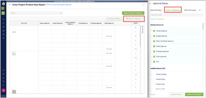 Open any report (for example, Approval Status Report) to access the Report Configurator.