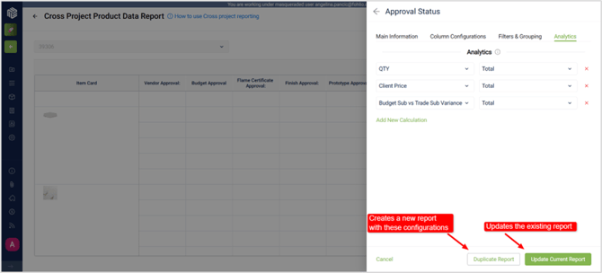 Click Update Report to refresh the results, or Duplicate Report to create a new report with the latest configurations.