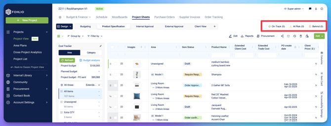 Fohlio’s Project Management experience is powered by automated item statuses.