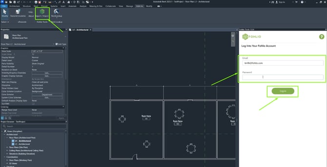 Fohlio’s Revit integration allows you to export and import project data between Revit and your Fohlio projects. This guide will walk you through how to use the Fohlio plugin within Revit for seamless data synchronization.