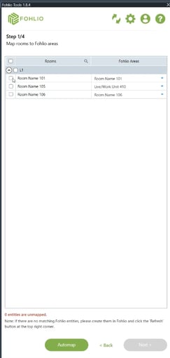 Map each room to a corresponding area in Fohlio using the dropdown.