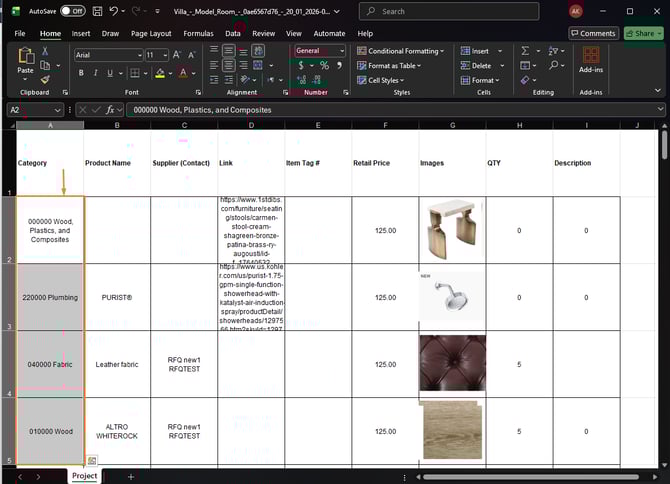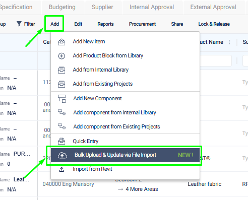 Importing large item lists from designers or architects