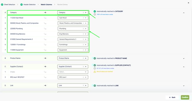 Categories will be mapped during the upload process